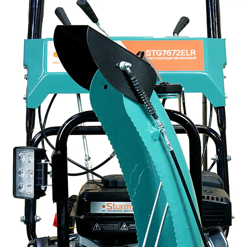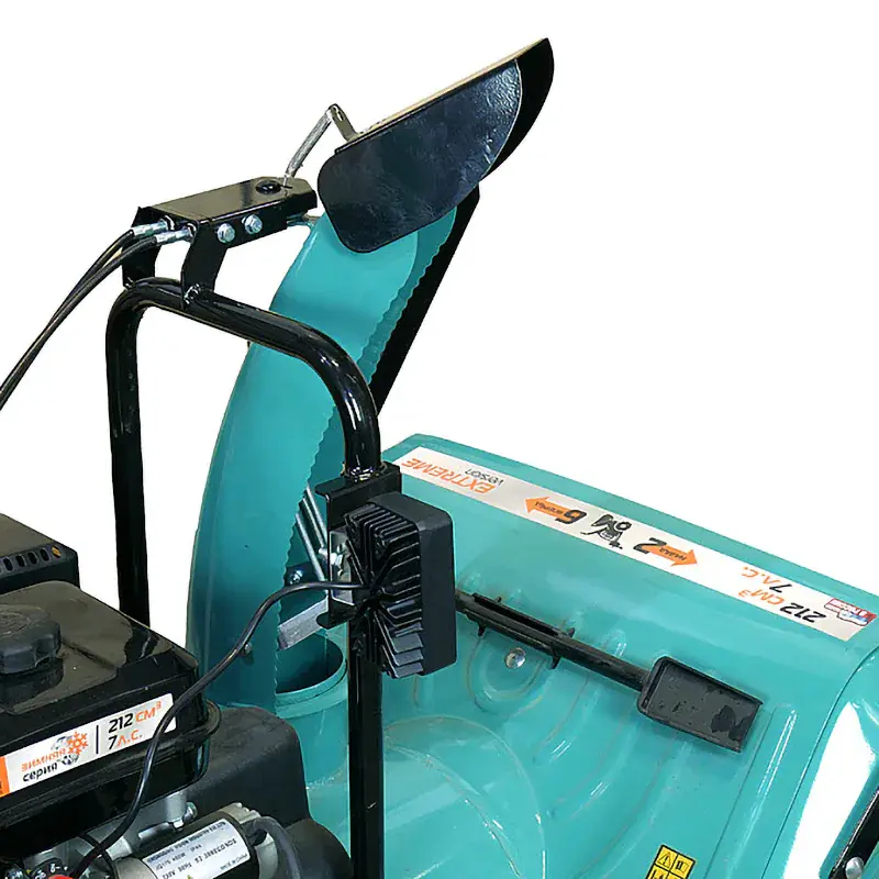 Удобный рычаг управления желобом снегоотбрасывателя всегда под рукой у пользователя для установки и изменения направления выброса снега. LED-фара позволяет комфортно работать снегоуборщиком в утренних и вечерних сумерках.