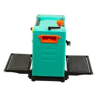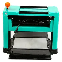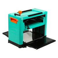 Мощный переносной станок для строгания деревянных заготовок шириной до 330мм с двумя удлинителями стола, оснащенными специальными роликами для облегчения подачи габаритных заготовок и их поддержки на входе и выходе. Надежная ременная конструкция привода строгального барабана и цепная конструкция привода автоподачи увеличивают общий срок службы станка.