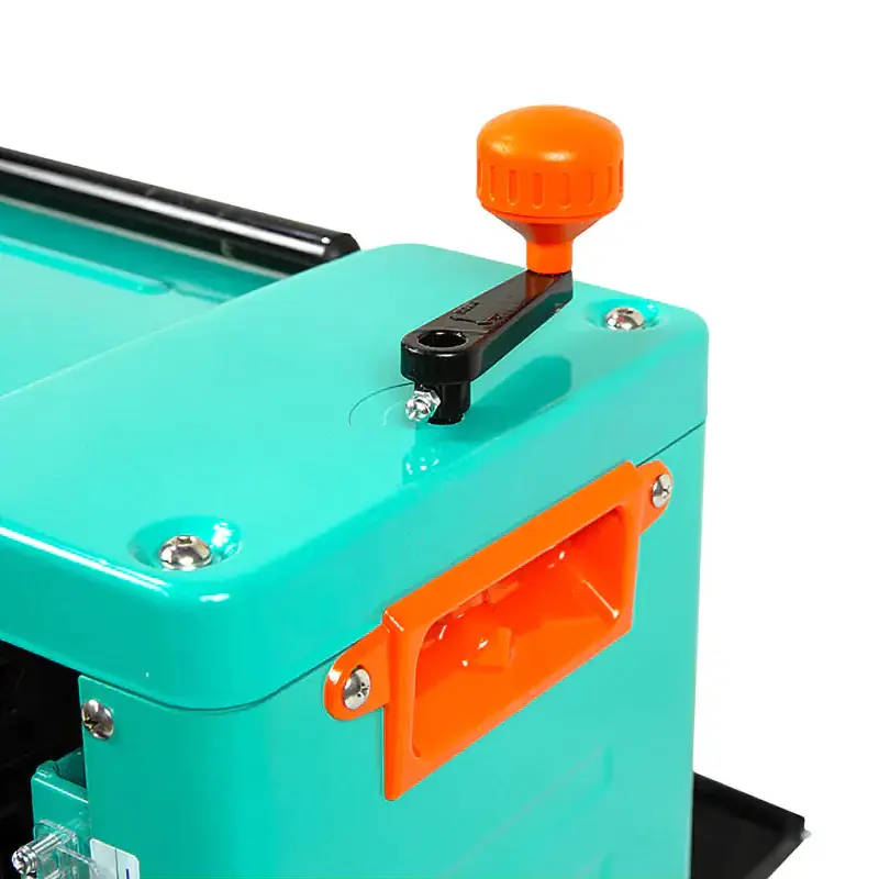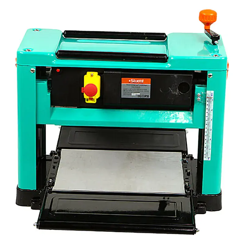 Ножи из быстрорежущей стали HSS подходят для обработки пород древесины разной степени твердости. Электромагнитный выключатель обеспечивает дополнительную безопасность и исключает риск случайного включения при перебоях в электросети. Станок оснащен боковыми рукоятками для удобства переноски в рабочей зоне.