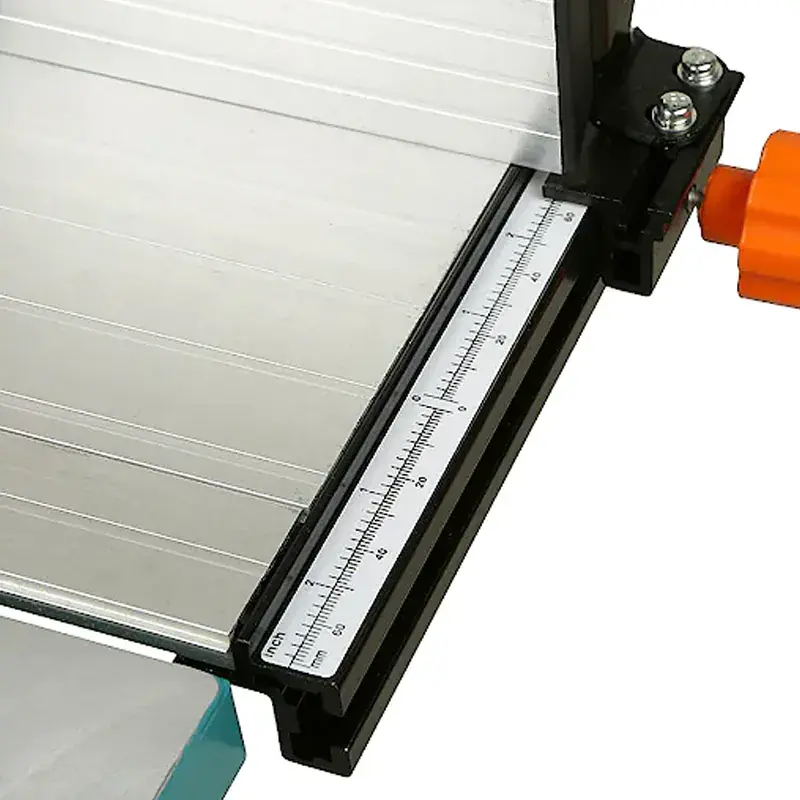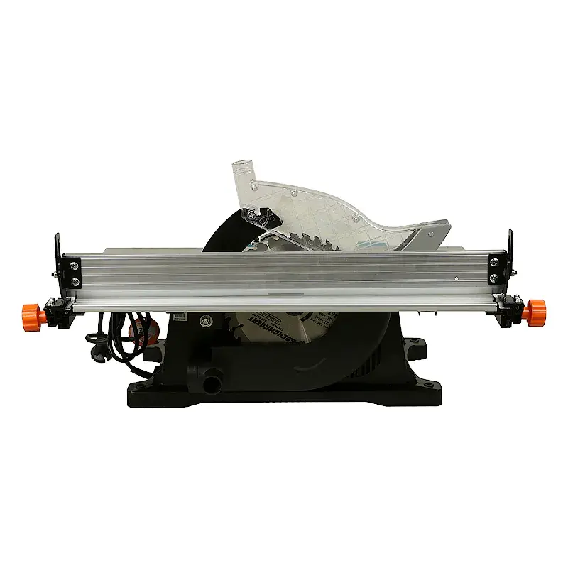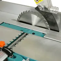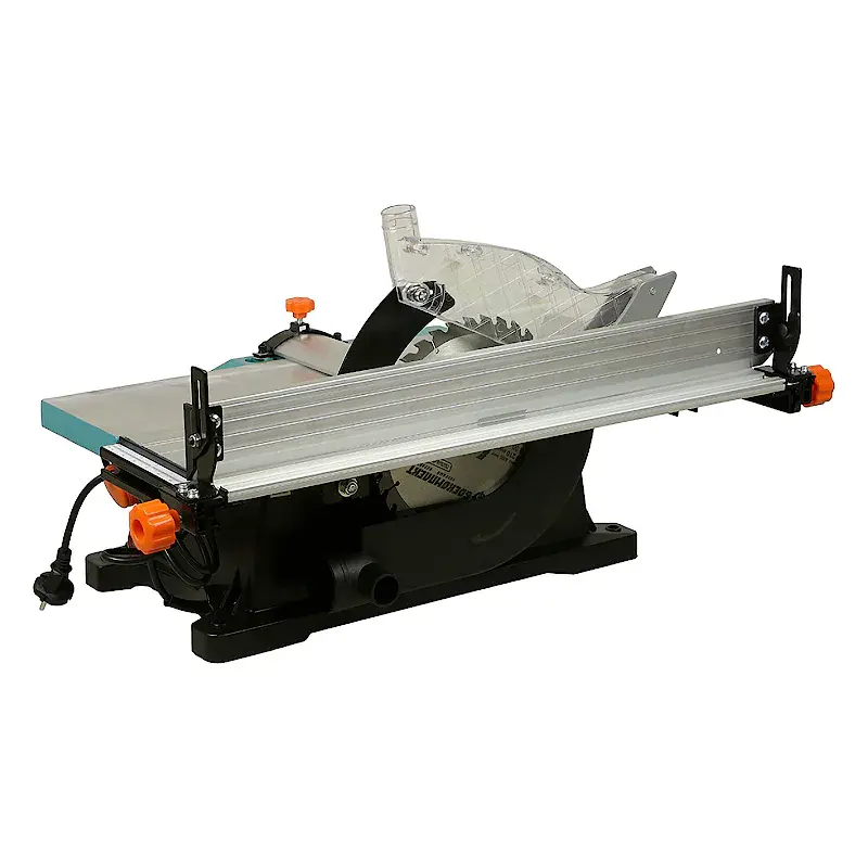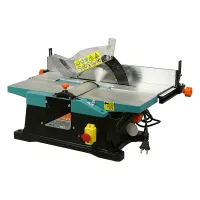 Частота вращения шпинделя портативного деревообрабатывающего станка достигает 4780 об/мин, что обеспечивает быстрое и качественное выполнение строгальных и распиловочных работ. Направляющая планка с линейкой позволяет выполнять точные пропилы вдоль кромки заготовки. Положение упора и параллельной рейки легко регулируется при помощи барашковых винтов. В комплект поставки входит высококачественный пильный диск с зубьями из карбида вольфрама, гарантирующий ровный и гладкий срез. Рабочий стол можно наклонить и зафиксировать для обработки заготовок под углом.