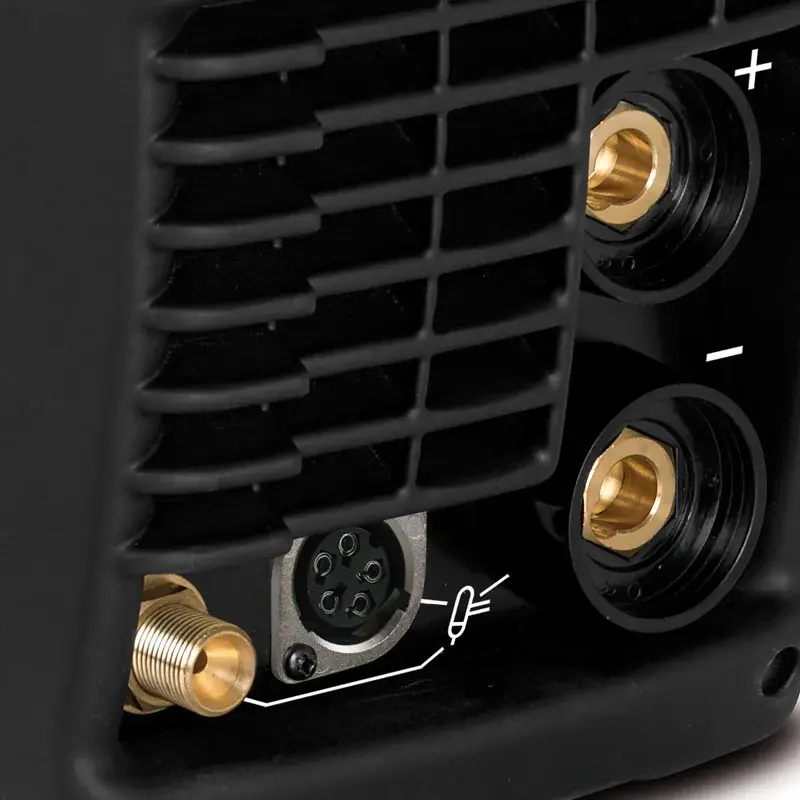 - регулирование TIG: двухуровневое регулирование, начальный/конечный ток, время контактной сварки, подача газа перед-после сварки, плавный подъем и спад тока, баланс, частота вольны