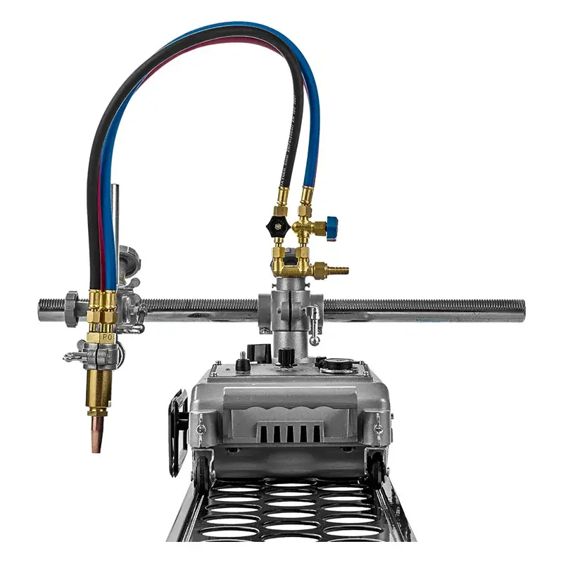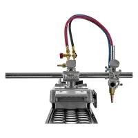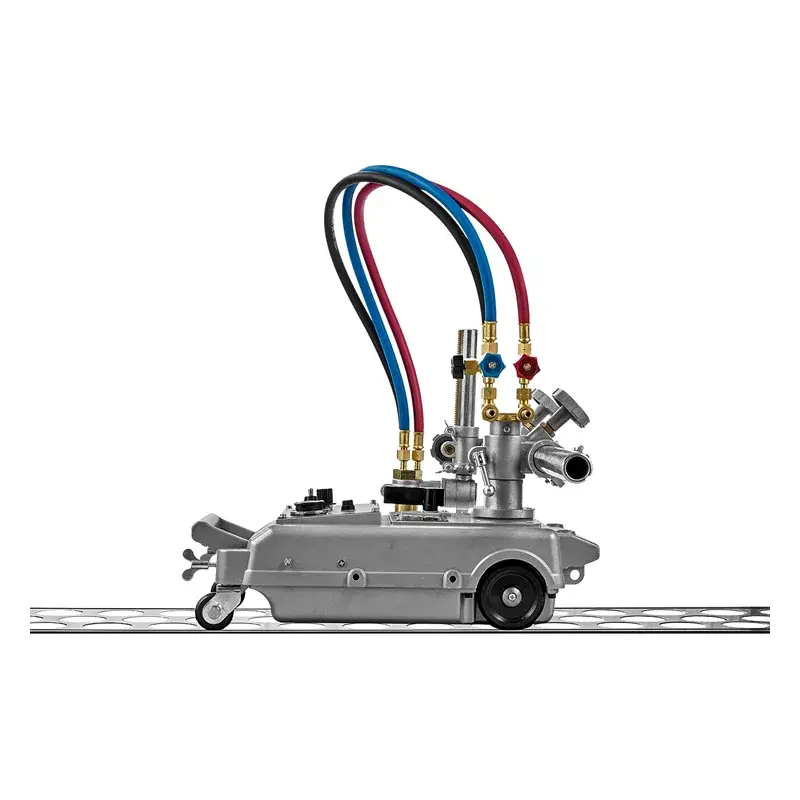 Резка выполняется газокислородным резаком, установленным в держателе на самоходной тележке. Зажим крепления резака для машин термической резки имеет реечный механизм, который позволяет перемещать резак, регулировать его высоту установки над поверхностью металла, а также устанавливать угол наклона резака в пределах ±45°. Для фиксации резака предусмотрены винты.