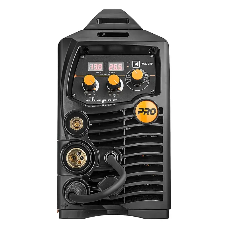 Сварочный инвертор Сварог PRO MIG 200 SYNERGY N229 предназначен для использования в среде защитных газов и смесях, с порошковой проволокой, а также с покрытым электродом или неплавящимся в среде инертных газов. Сварочный ток плавно настраивается вручную в диапазоне от 10 до 200 А во всех режимах.