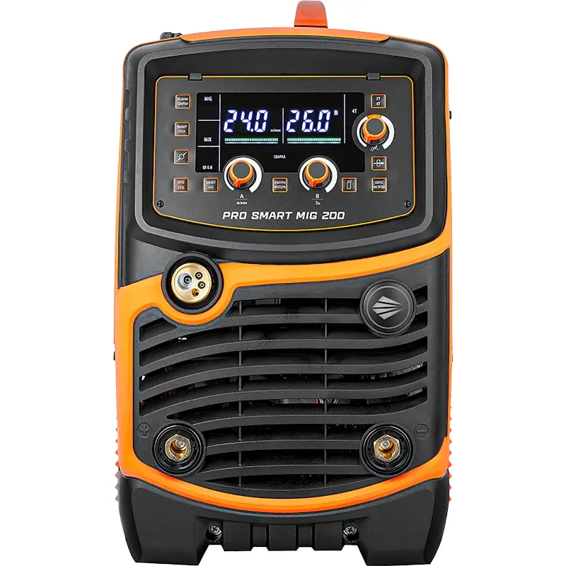 Сварочный инвертор Сварог PRO SMART MIG 200 представляет собой универсальное оборудование для сварки алюминия, меди, титана, нержавеющих, высоко- и низкоуглеродистых сталей, различных сплавов. Информативная панель с ЖК-дисплеем и понятными элементами управления упрощает настройку сварочных режимов. С помощью аппарата, работающего в диапазоне сварочного тока 50 А–220 А, можно выполнять следующие виды сварки: покрытыми электродами 1,6–4,0 мм, аргонодуговую TIG Lift и проволокой в среде защитных газов MIG/MAG с автоматической подачей. Устройство работает от однофазной сети с питающим напряжением 220 В.
