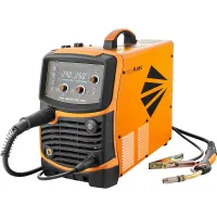 Оборудование поддерживает настройку сварочного процесса в синергетическом режиме. Аппарат самостоятельно подбирает оптимальные значения в зависимости от введенного параметра, например, размера электрода или проволоки. Текущие рабочие характеристики отображаются на цифровом дисплее. Индикатор перегрева предупреждает о состоянии инверторного сварочного полуавтомата MIG/MAG.