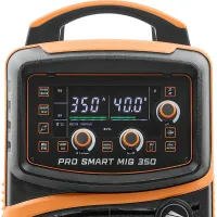 Сварочный инвертор Сварог PRO SMART MIG 350 максимальной мощностью 13,9 кВт — профессиональное оборудование для сварки алюминия, меди, титана, нержавеющих, высоко- и низкоуглеродистых сталей и сплавов. Аппарат рассчитан на эксплуатацию в суровых условиях при температуре окружающего воздуха -30_С. В отдельный механизм подачи сварочной проволоки можно заправлять катушки весом до 20 кг. С помощью аппарата, работающего в диапазоне сварочного тока 50–350 А, можно выполнять следующие виды сварки: покрытыми электродами 1,6–6,0 мм, аргонодуговую TIG Lift, проволокой в среде защитных газов MIG/MAG с автоматической подачей. Устройство работает от трехфазной сети с питающим напряжением 380 В.