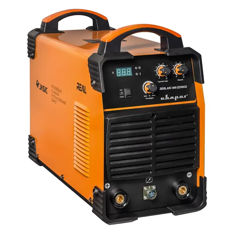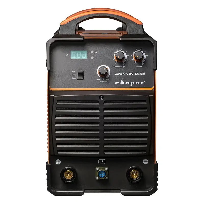 Инвертор Сварог REAL ARC 400 Z29802 имеет надежный корпус из металла с ребрами жесткости и защитным бампером. Мощный вентилятор обеспечивает обдув внутренних узлов для предотвращения перегрева. Силовая часть отделена от системы управления, это снижает уровень загрязнения и улучшает охлаждение, поэтому позволяет работать на загруженных производственных площадках. Силовые выходы с разъемами ОКС 35-50 мм не нагреваются во время эксплуатации. Вы можете дополнительно приобрести и подключить к аппарату пульт ДУ для дистанционного управления сварочным процессом.