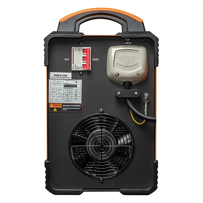 Сварочный инвертор ММА питается от 3-фазной электросети 380 В, подходит для профессионального применения. Сила тока, горячий старт и форсаж настраиваются бесступенчато тремя удобными поворотными регуляторами, расположенными на панели управления. Широкий диапазон тока позволяет выполнять аккуратные швы на металлических заготовках разной толщины. Текущее значение выводится на дисплей. О перегреве или перегрузке сигнализируют соответствующие индикаторы.
