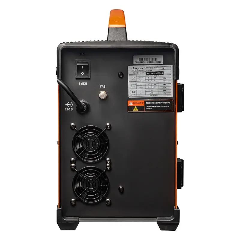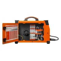 В сварочном аппарате вручную регулируется индуктивность, скорость подачи проволоки, ток, а также напряжение на дуге. Гибкая настройка позволит адаптировать модель под разные задачи для получения качественного результата. А если вы не знаете как правильно подобрать рабочие параметры, то вас выручит памятка, которая находится с обратной стороны боковой дверцы корпуса.