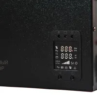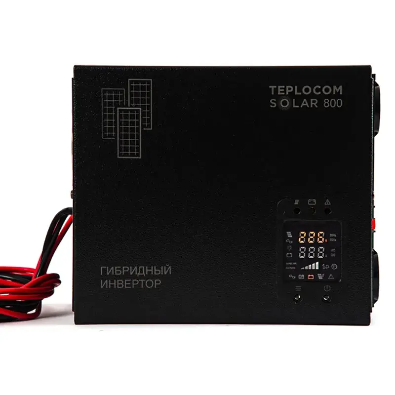 Источник бесперебойного питания для котла отопления TEPLOCOM SOLAR-800 заменяет сразу три устройства: стабилизатор, инвертор и ИБП. Обладает номинальной мощностью 800 ВА. Устройство обеспечивает чистый синус на выходе, за счет MPPT- контроллера эффективно заряжает аккумуляторные батареи, а также защищает от перегрузки и перегрева.