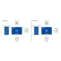 Инвертор предназначен для непрерывной подачи энергии от фотоэлектрических модулей, аккумулятора или городской сети. Способен одновременно питать нагрузку и заряжать аккумуляторы, если достаточно вырабатываемой мощности от солнечных панелей. Имеет удобный светодиодный дисплей и кнопки управления для установки различных режимов работы. Оптимальный диапазон входных напряжений от солнечных панелей позволяет использовать любой тип фотоэлектрических модулей.