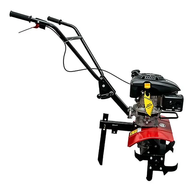 Бензиновый культиватор самоходный, поэтому его не придется толкать вперед. Это облегчает работу, вам останется только управлять направлением движения.