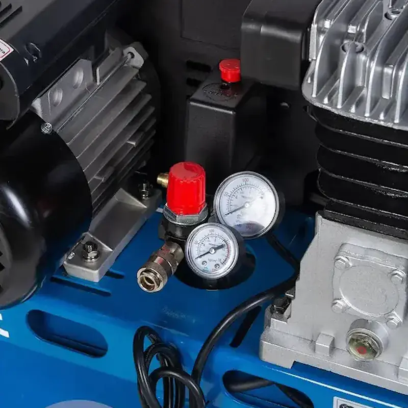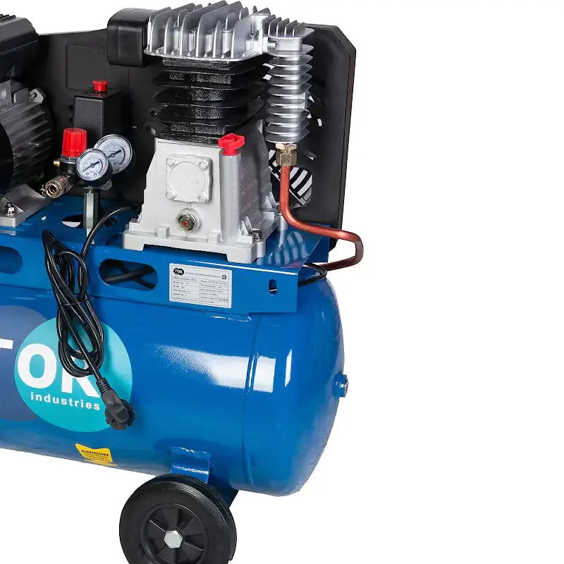Ременной масляный компрессор TOR OBL 50-10-2,2 220V используется для получения сжатого воздуха с последующей его подачей в пневмоинструмент. Модель подходит для применения в различных производственных условиях, на станциях технического обслуживания, в автомастерских и строительстве. Объем ресивера 50 литров обеспечивает продолжительную работу с оборудованием. Компрессор оборудован предохранительным клапаном для предотвращения чрезмерного давления в баке, что гарантирует безопасность при работе. Ременной привод со шкивами оснащен защитным кожухом для дополнительной защиты. Манометр выходного давления позволяет контролировать уровень подачи давления при работе. Наличие транспортировочных колес позволяет легко перемещать оборудование по рабочей площадке.