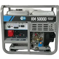 TOR KM5000D - мощный и надёжный в применении резервный источник электричества на силовой раме классической компоновки для стационарного использования. Предназначен для обеспечения резервным электричеством большинства бытовых приборов и строительных объектов как с однофазным, так и с трёхфазным подключением. Благодаря обмоткам альтернатора из 100% меди и дизельному двигателю генератор способен длительное время выдавать номинальную мощность в 5 кВт. Оборудован электрозапуском.
