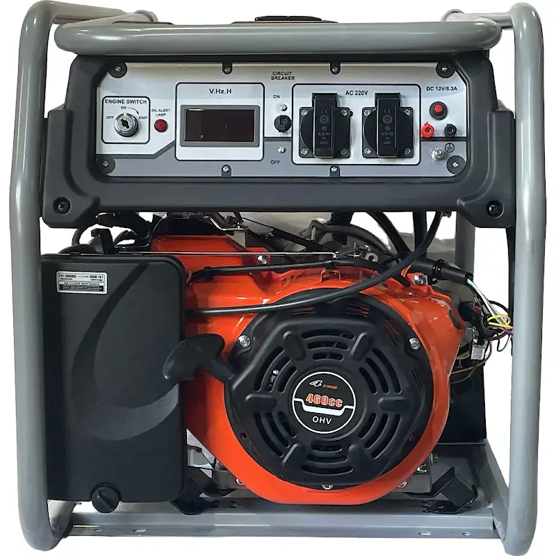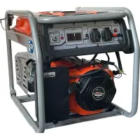 Генератор бензиновый TOR KM9500H 7,0 кВт 220В 27 л. с кнопкой запуска и колесами эта мощная модель может снабжать электроэнергией несколько потребителей одновременно либо одного, но с высокими пусковыми токами. Рекомендуется для электроснабжения дома, небольшого учреждения, офиса, магазина, производства. Вместительный бак на 27 литров бензина обеспечит беспрерывную работу на протяжении 9 часов. Синхронный альтернатор с медной намоткой позволяет вырабатывать чистый ток и выдерживать высокие нагрузки в момент запуска потребителей с электродвигателем. Кнопка запуска с электростартером облегчает процесс запуска генератора. Все рабочие механизмы прочно закреплены на массивной металлической раме. Наличие колес в комплекте помогает транспортировать генератор без особых усилий.