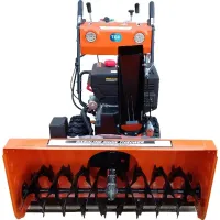 Шнек бензинового снегоуборщика сделан из металла, поэтому способен быстро разрушать даже обледеневшие сугробы и плотные комки снега. Максимальная высота сугробов, с которыми может справиться модель, составляет 56 см. Большие колеса с рельефным рисунком обеспечивают плавный ход даже по неровной поверхности. 4 скорости вперед позволят подобрать оптимальный темп работы. Две скорости заднего хода повышают маневренность, облегчают парковку и разворот машины на узких дорожках.