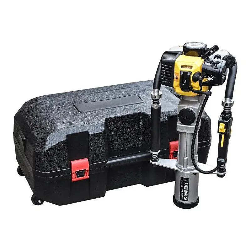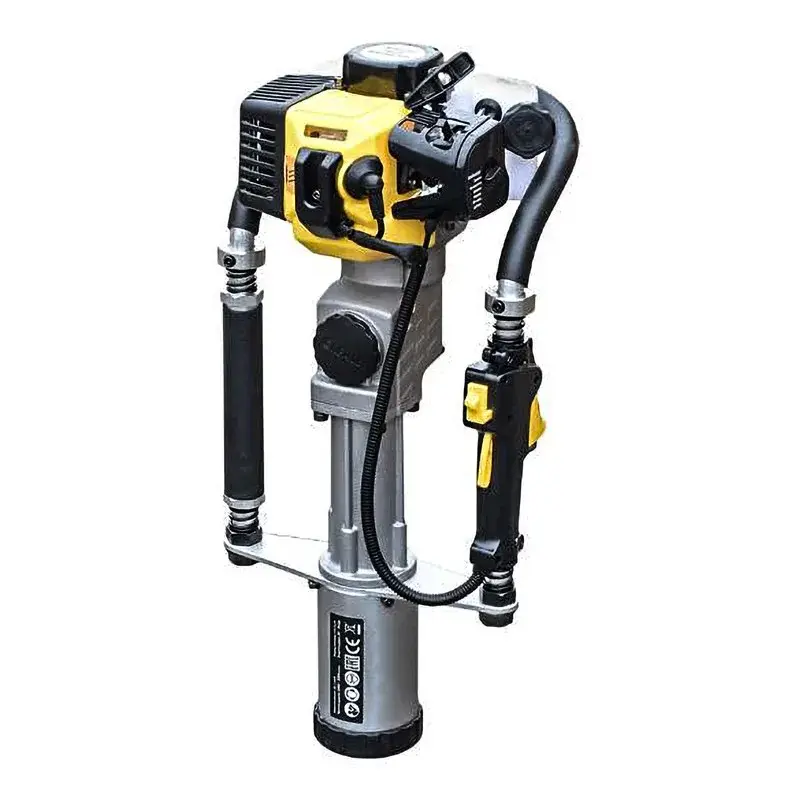 Бензиновый копер TSS-65GPD используется для забивания свай диаметром до 80 мм на строительных площадках или в индивидуальных хозяйствах. Инструмент работает на двухтактном двигателе мощностью 1,22 л.с., оснащенном ручным стартером. Экономичное потребление топлива обеспечивает продолжительную работу на одной заправке бака. Копер поставляется в прочном кейсе для удобства хранения и транспортировки.