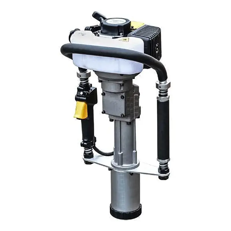 Бензиновый копер работает под собственным весом, поэтому при использовании не нужно прилагать дополнительных усилий. В зависимости от плотности грунта, в который забиваются сваи, силу удара можно регулировать посредством изменения оборотов двигателя. Входящие в комплект насадки обеспечивают плотный обхват забиваемого материала в соответствии с размером.