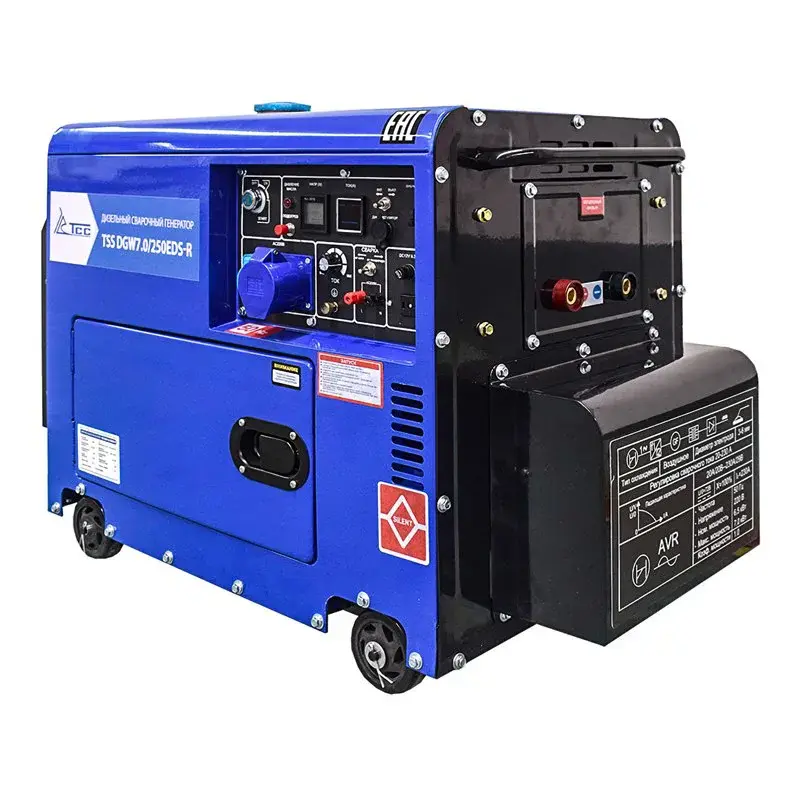 Сварочный дизельный генератор TSS DGW 7.0/250EDS-R — предназначен для проведения Ручной Дуговой Сварки. В этом генераторе сварочный модуль собран по инверторной схеме. Одновременно можно использовать генератор в режиме сварки и в режиме автономного источника электроснабжения. Можно освещать место сварки, подключать электроинструмент - дрель, шлифмашинку, болгарку и т.п. Кроме того, встроенный сварочный инвертор возможно использовать от сети стационарного электроснабжения как обычный сварочный аппарат.