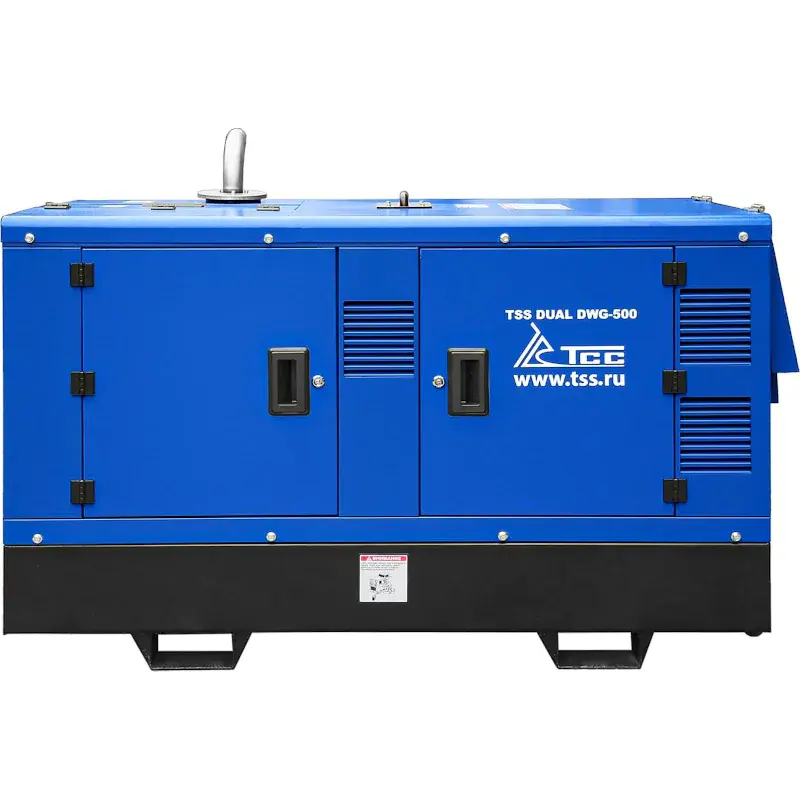 Двухпостовой дизельный сварочный генератор ТСС DUAL DWG-500 в защитном кожухе служит для автономного снабжения одно- и трехфазным током электроприборов и сварочного оборудования. Номинальная выходная мощность составляет 22 кВт. Два поста с одинаковым набором функций обеспечивают работу одновременно двух сварщиков. Диапазон регулировки сварочного тока: 30–500 А, напряжения: 14–39 А. Дизель-генераторная установка предназначена для организации сварочных работ в условиях, где нет постоянного источника энергии.