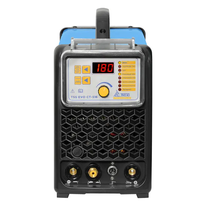 Сварочный инвертор 4 в 1 ТСС EVO CT-518 – многофункциональная модель для ручной дуговой, аргонодуговой сварки и плазменной резки металлов. Аппарат имеет эргономичную конструкцию, удобен в управлении, подходит для бытового и профессионального применения.