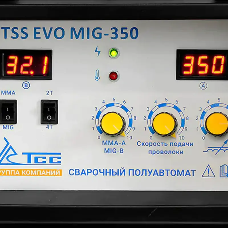 Сварочный аппарат ТСС EVO MIG-350 поддерживает функции «Горячий старт» и «Антизалипание». Первая — обеспечивает быстрый поджиг дуги за счет повышения сварочного тока на старте. Вторая — значительно облегчает отрыв электрода от поверхности свариваемого изделия при его прилипании.