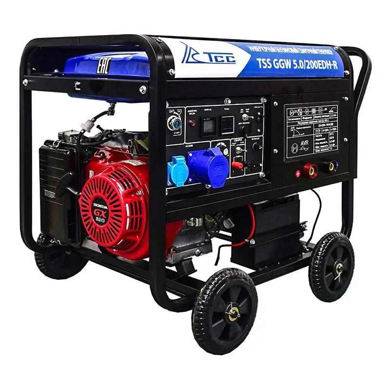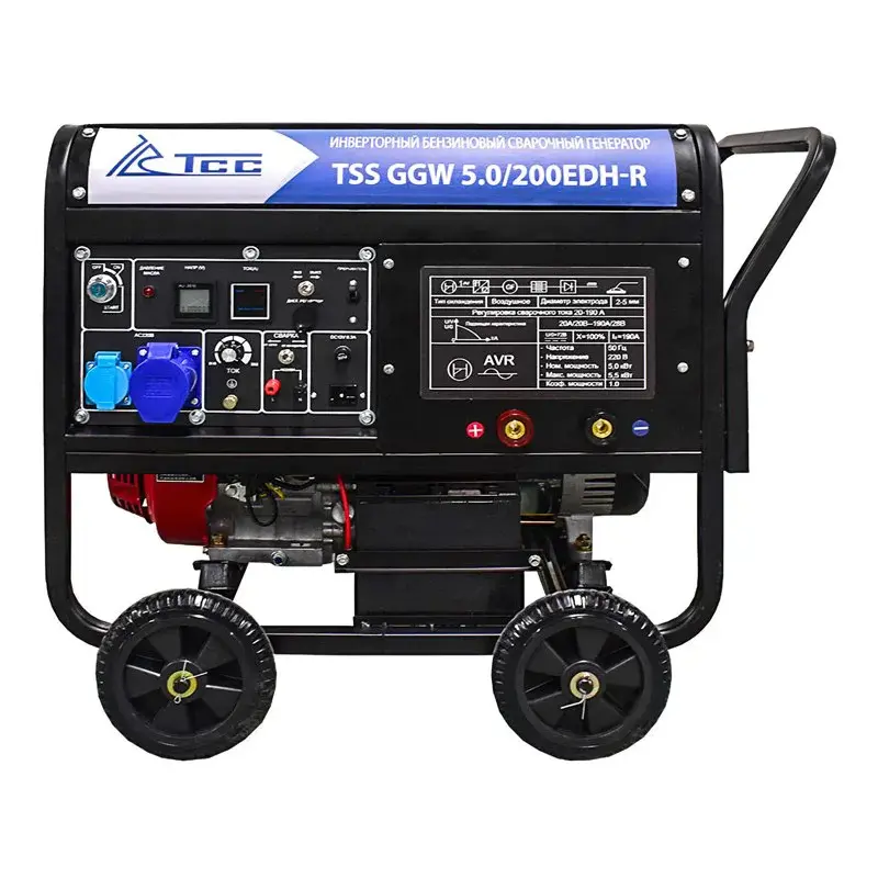 Сварочный бензиновый генератор TSS GGW 5.0/200EDH-R — предназначен для проведения профессиональной Ручной Дуговой Сварки и питания электропотребителей в условиях отсутствия стационарной сети электроснабжения.