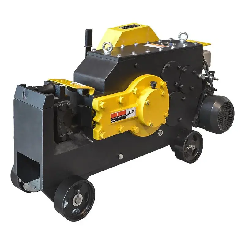 Станок для резки арматуры ТСС-GQ 42A имеет мощность 3 кВт и предназначен для разрубания металлических прутов как с круглым, так и с квадратным сечением. Агрегат работает от сети с выходным напряжением 380 В и имеет колеса для удобства транспортировки по площадке.