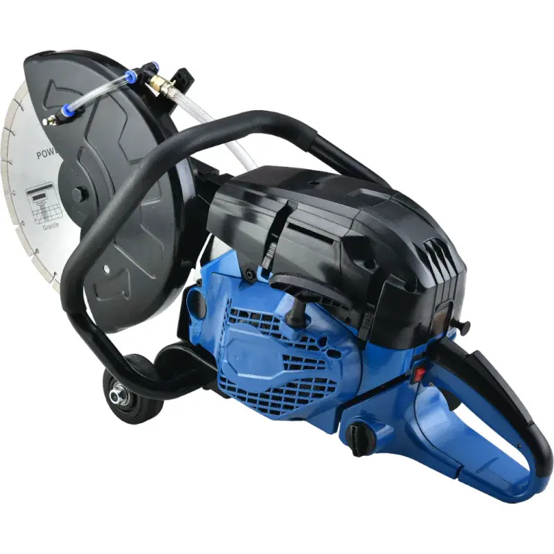 В качестве рабочей оснастки можно использовать диски с различным диаметром посадочного отверстия: 20 или 25 мм. Бензиновый резчик ТСС GT-6208S имеет разъем для подключения водяного шланга. Охлаждение значительно повышает производительность и рабочий ресурс бензореза.
