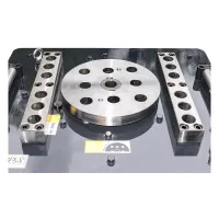 Электрический двигатель и редуктор приводят в движение рабочий диск. Арматура сгибается вокруг оси этого диска. Радиус, угол изгиба и форма корректируются при помощи втулок.