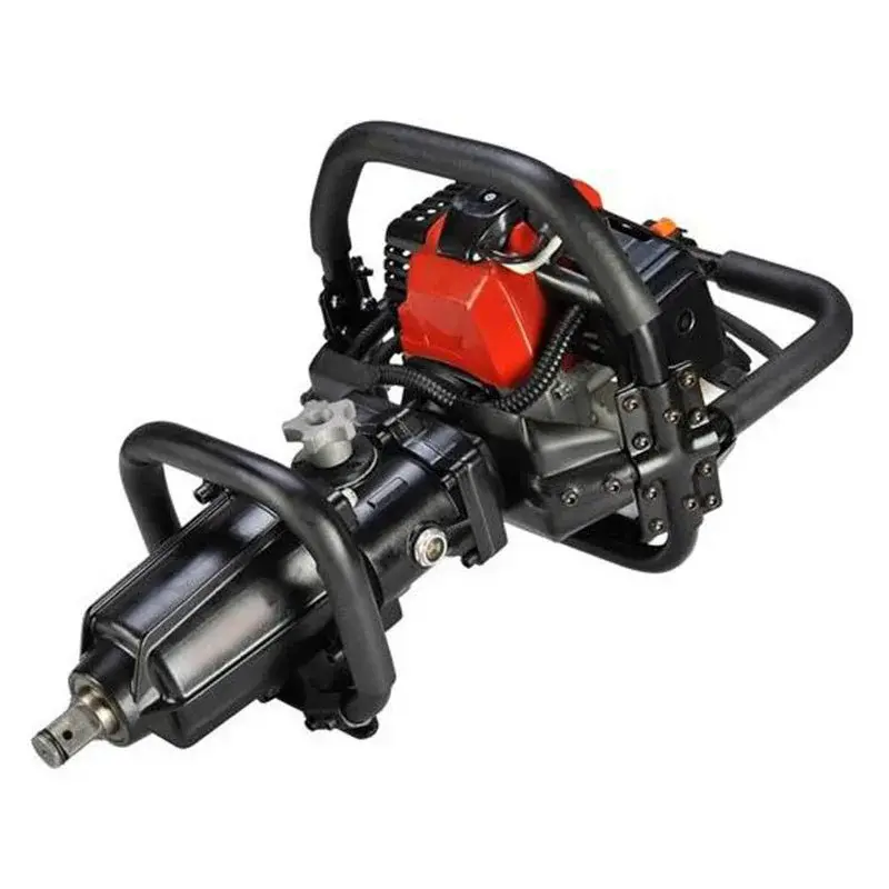 Ударный гайковерт с двухтактным бензиновым двигателем, является профессиональным инструментом и предназначен для постоянного использования. Главным образом этот инструмент используется в строительстве и ремонте железнодорожных путей. Применяется для откручивания, закручивания резьбовых соединений. В отличии от электрического, он более мощный и не требует источника электропитания. По сравнению с пневматическими или гидравлическими, использование бензинового гайковерта не требует дополнительной спецтехники, Значительно ниже по стоимости. Обладает моментом затяжки в 1700 Нм. Квадрат шпинделя у этой модели составляет 1 дюйм. Мощность двигателя инструмента — 1,7 кВт.