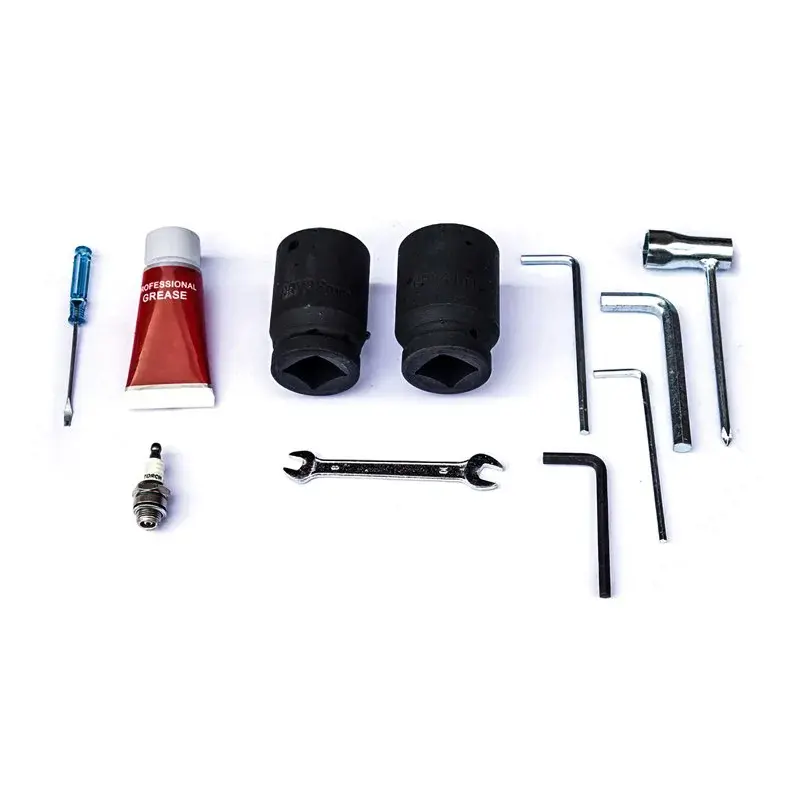 •Набор инструмента: накидной ключ, гаечный ключ, свечной ключ, отвертка, шестигранные ключи - 3шт.