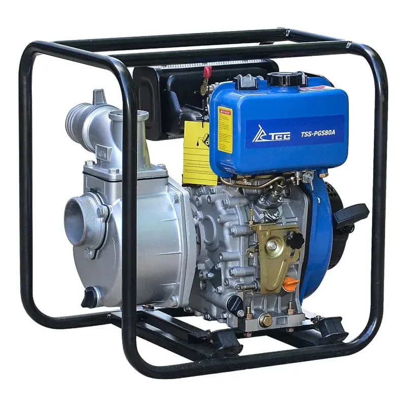 Дизельная мотопомпа TSS-PGS80A применяется для перекачивания чистой или слегка загрязненной воды. Производительность составляет 916 л/мин, а максимальный напор достигает 26 м. Профессиональный аппарат выручит при осушении погребов и подвалов, пригодится для заполнения бассейнов или прудов, будет полезен на загородном участке или на стройке.