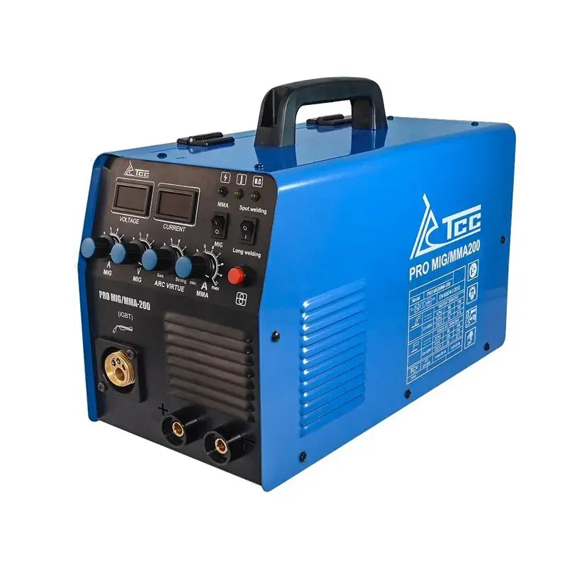 Аппарат инверторного типа TSS PRO MIG/MMA-200 для полуавтоматической сварки в среде защитного газа (MIG/MAG), сварки порошковой проволокой (FCAW) и ручной дуговой сварки (ММА).