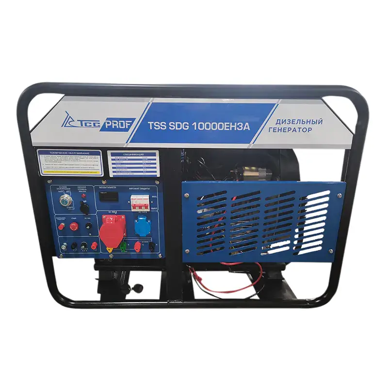 Дизельный генератор TSS SDG 10000 EH3А с надежным и экономичным двигателем, электростартером и разъемом для подключения блока АВР. Для удобства передвижения оснащенный колесным комплектом.