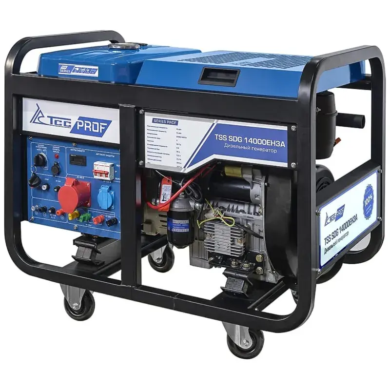 Дизельный генератор ТСС SDG 14000EH3A способен вырабатывать электроэнергию с номинальной мощностью 12 кВт и напряжением 230-400 вольт, что позволяет подключать к нему различные потребители. Кроме того, он оснащен колесным комплектом для удобства передвижения по рабочей площадке.