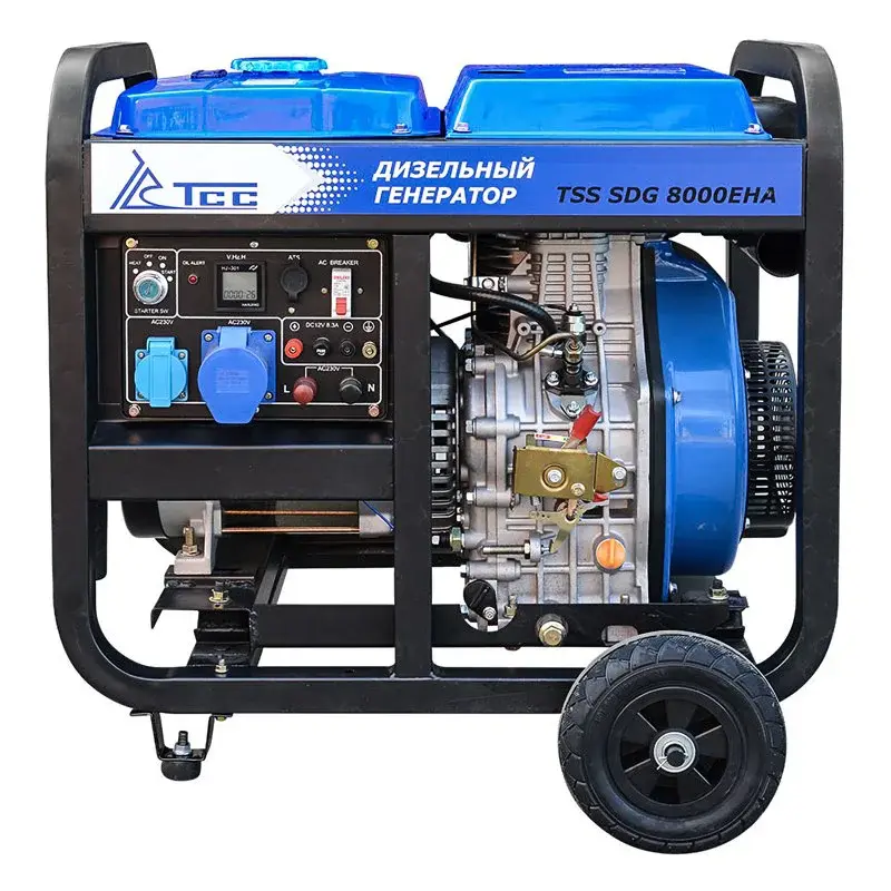 Дизельный генератор TSS SDG 8000EHA предназначен для резервного энергоснабжения однофазных бытовых электроприборов и инструментов в частном доме или на даче. Передвижная электростанция с максимальной мощностью 8 кВт может служить главным источником питания для кемпинга, объектов уличной торговли или малого строительства.