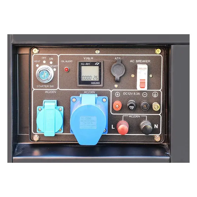 Воздушный, масляный и топливный фильтры продлевают срок службы электростанции. Интеллектуальный модуль с цифровым дисплеем удобен для контроля моточасов, напряжения и частоты тока. Датчик уровня топлива напоминает о необходимости заправки. При понижении давления масла загорается индикатор. В конструкции предусмотрен разъем для подключения блока автоматики.
