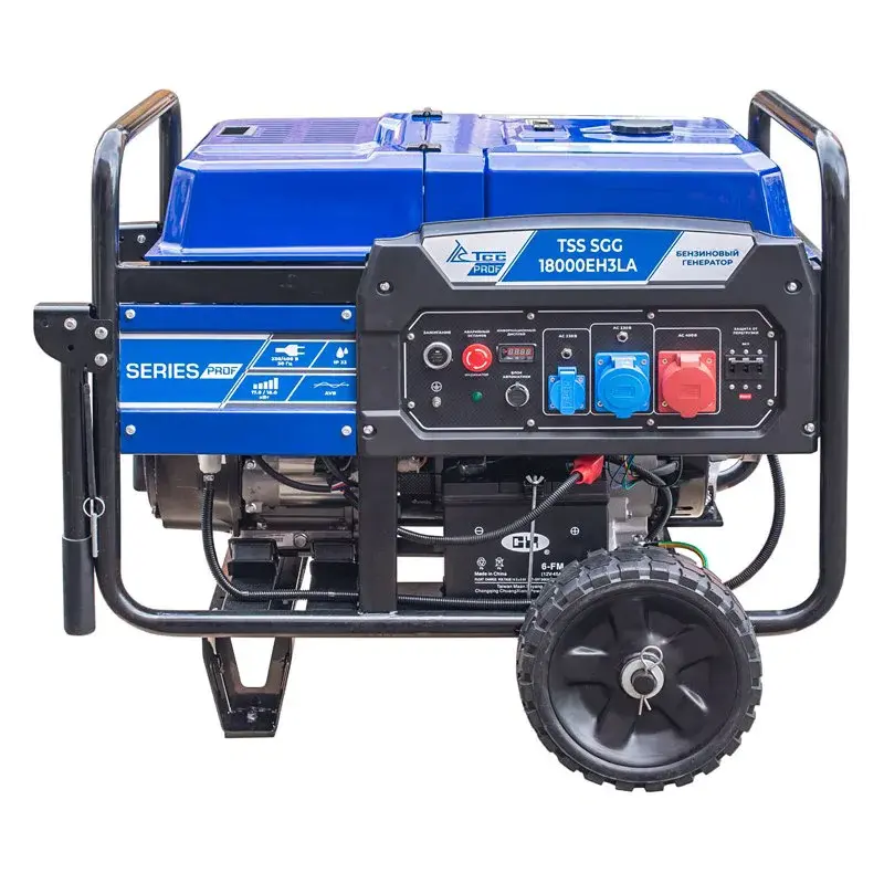 Бензогенератор TSS SGG 18000EH3LA – профессиональная модель, оборудованная двигателем Loncin, который обладает большим моторесурсом. Аппарат отлично подходит для питания техники мощностью до 17 кВт. Для удобного перемещения по рабочей зоне генератор оснащен транспортировочным комплектом.