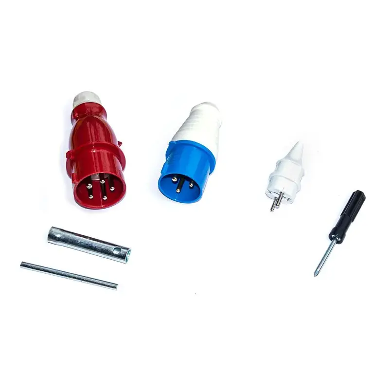 На корпусе бензинового электрогенератора размещено несколько розеток: 220 В (16 А), 220 В (32А), а также промышленная 380 В (32 А). Каждая из них оснащена защитным колпачком, который не позволяет грязи попасть внутрь. Это позволит хранить генератор в строительном или гаражном помещении, где может быть много пыли.