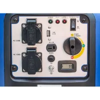 На панели управления инверторного бензинового генератора ТСС SGG 2000Si есть сервисные индикаторы. Лампочки загораются при превышении мощности, а также низком уровне масла в бачке. Встроенная система защиты автоматически остановит работу бензиновой электростанции при опасности поломки, например из-за короткого замыкания.