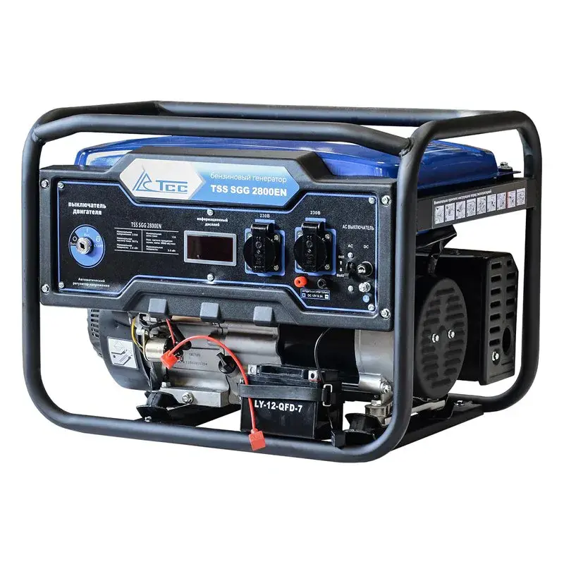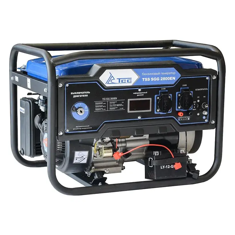 Бензогенератор TSS SGG 2800EN рассчитан на подключение бытовой или строительной техники, которая суммарно не превышает мощности в 2,8 кВт. Для стабильного напряжения есть регулятор AVR, а для продолжительной работы без остановки предусмотрен вместительный топливный бак.