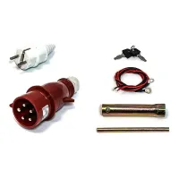 На панели управления расположены две розетки: стандартная 230 В и силовая 380 В. От пыли и влаги выходы защищены пластиковыми колпачками. Для стабильного питания потребителей есть система AVR. Регулятор напряжения бережет подключенное к модели оборудование от преждевременной поломки, а двигатель генератора от перегрузки.