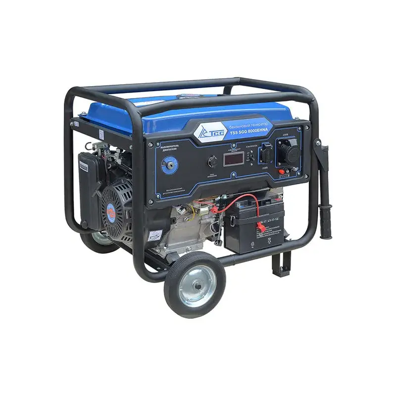 Бензогенератор TSS SGG 8000EHNA применяется для питания одного или нескольких потребителей, суммарная мощность которых не превышает 7,8 кВт. Модель обладает транспортировочным комплектом для простого перемещения по рабочей площадке и позволяет дополнительно подключать блок автоматики для стабильного напряжения даже при скачках электросети.