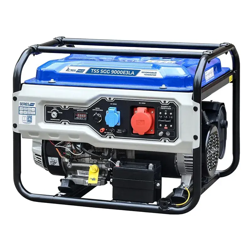 Бензогенератор TSS SGG 9000E3LA разработан для питания трехфазного оборудования мощностью до 8 кВт. Модель выдерживает большие нагрузки за счет двигателя с большим ресурсом моточасов Loncin LC192FD и медной обмотки альтернатора.