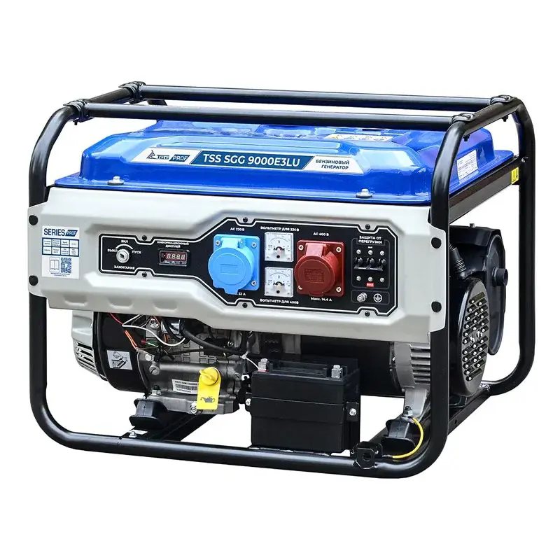 Бензогенератор TSS SGG 9000E3LU подходит как для питания однофазного оборудования мощностью 7,5 кВт, так и трехфазного до 8 кВт. Вместительный топливный бак объемом 30 л обеспечивает 10 ч беспрерывной работы модели без дозаправки.