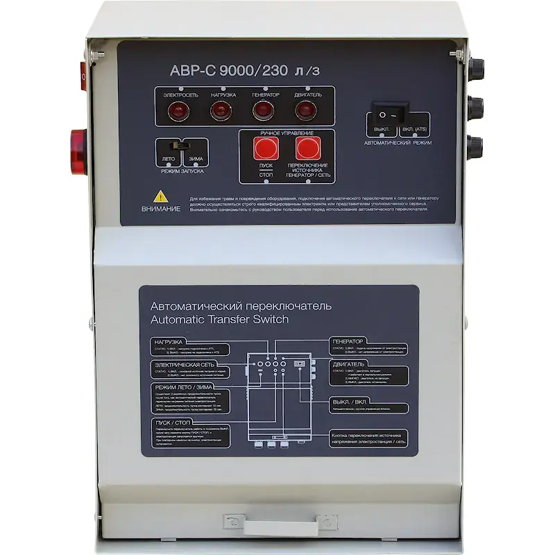 На корпусе есть разъем для подключения блока автоматики АВР, который докупается отдельно. При его установке регулятор обеспечит стабильное выходное напряжение даже при скачках в электросети. Это защищает подключенную технику от поломки, а мотор бензинового генератора TSS SGG 9000ELA от перегрузки.