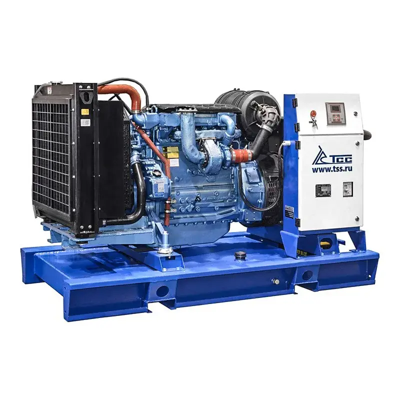 Промышленный дизельный генератор ТСС TBd 83TS номинальной мощностью 60 кВт служит в качестве автономного источника однофазного и трехфазного тока для питания производственных предприятий, строительных площадок, торговых комплексов, поселков, больниц и других промышленных и социальных объектов, где жизненно необходимо бесперебойное электроснабжение. Генераторная установка оснащена двигателем компании Baudouin номинальной мощностью 74 кВт с жидкостным охлаждением, который адаптирован под российское дизельное топливо и суровые климатические условия. Электростанция имеет открытый тип кожуха и рассчитана на длительную работу без дозаправки благодаря топливному баку объемом 150 литров.