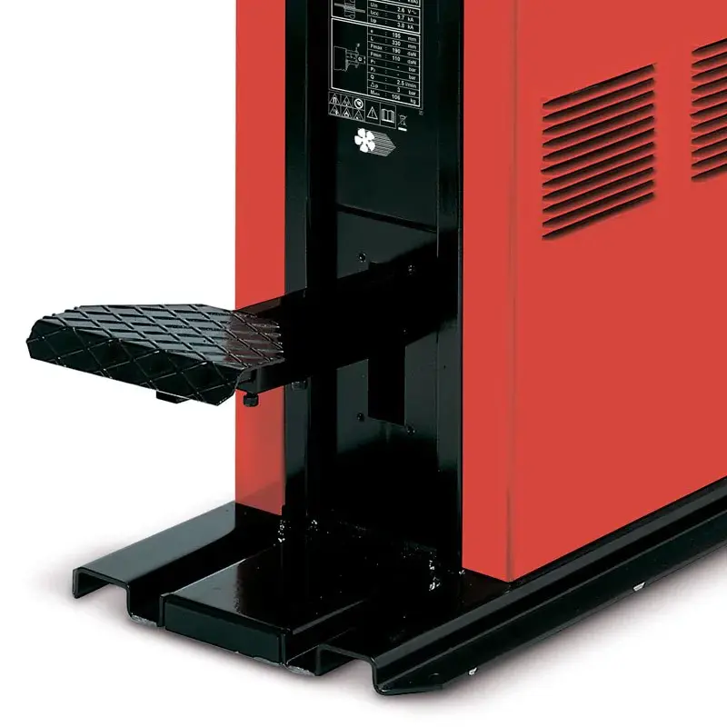 За сварку отвечают 2 контакта Telwin PTE 18 LCD, установленных на подвижную основу - они сжимают листы металла и приваривают друг к другу. В движение эти элементы приводятся педалью. Такая конструкция облегчает использование, т.к. ваши руки будут свободны, и вы сможете удерживать большие заготовки.