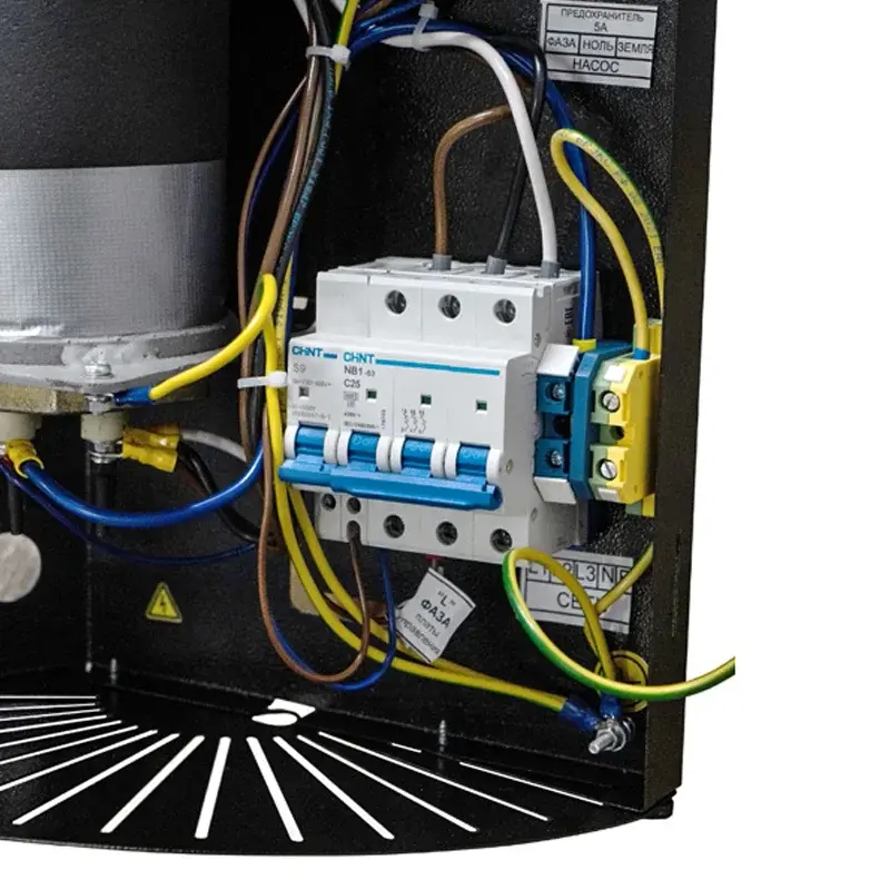 Для поддержания комфортной температуры в помещении возможно подключение комнатного термостата. При достижении нужной температуры термостат отправит управляющий сигнал на отключение котла. В результате исключается перерасход электроэнергии.
